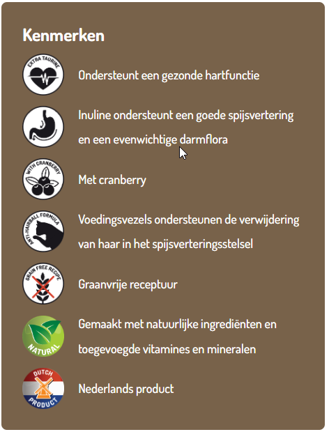 De voeding draagt bij aan een gezond hart, goede vertering en een uitgebalanceerde darmflora.