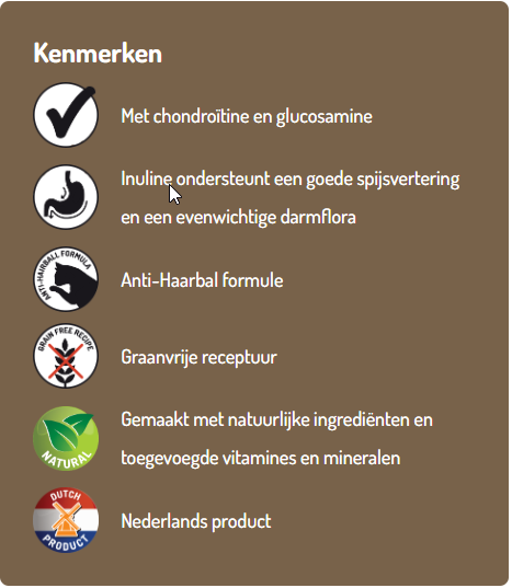 Daarnaast ondersteunt die het verwijderen van haren uit het verteringssysteem die door jouw kat zijn ingeslikt bij het schoonmaken van zijn vacht.