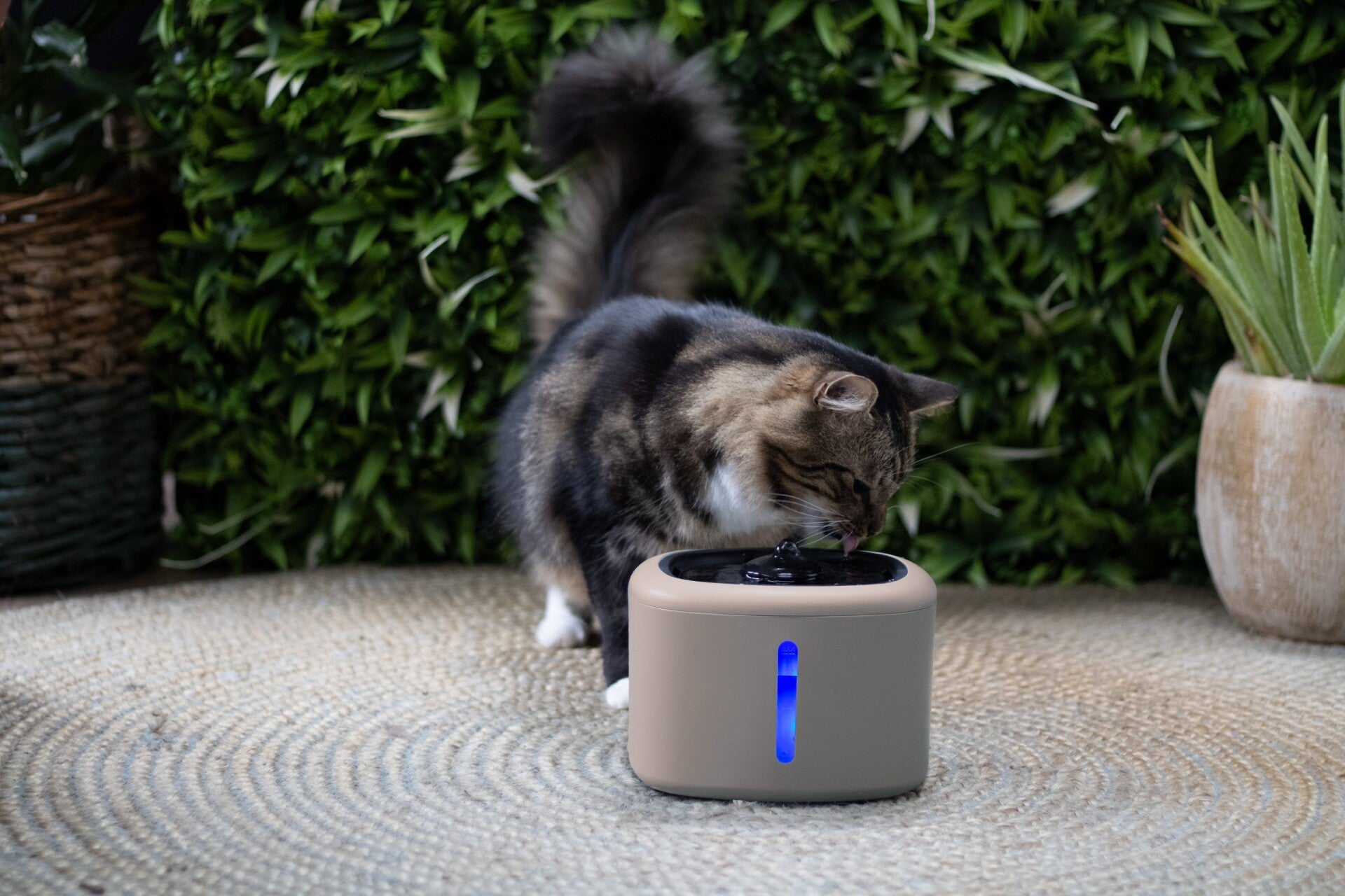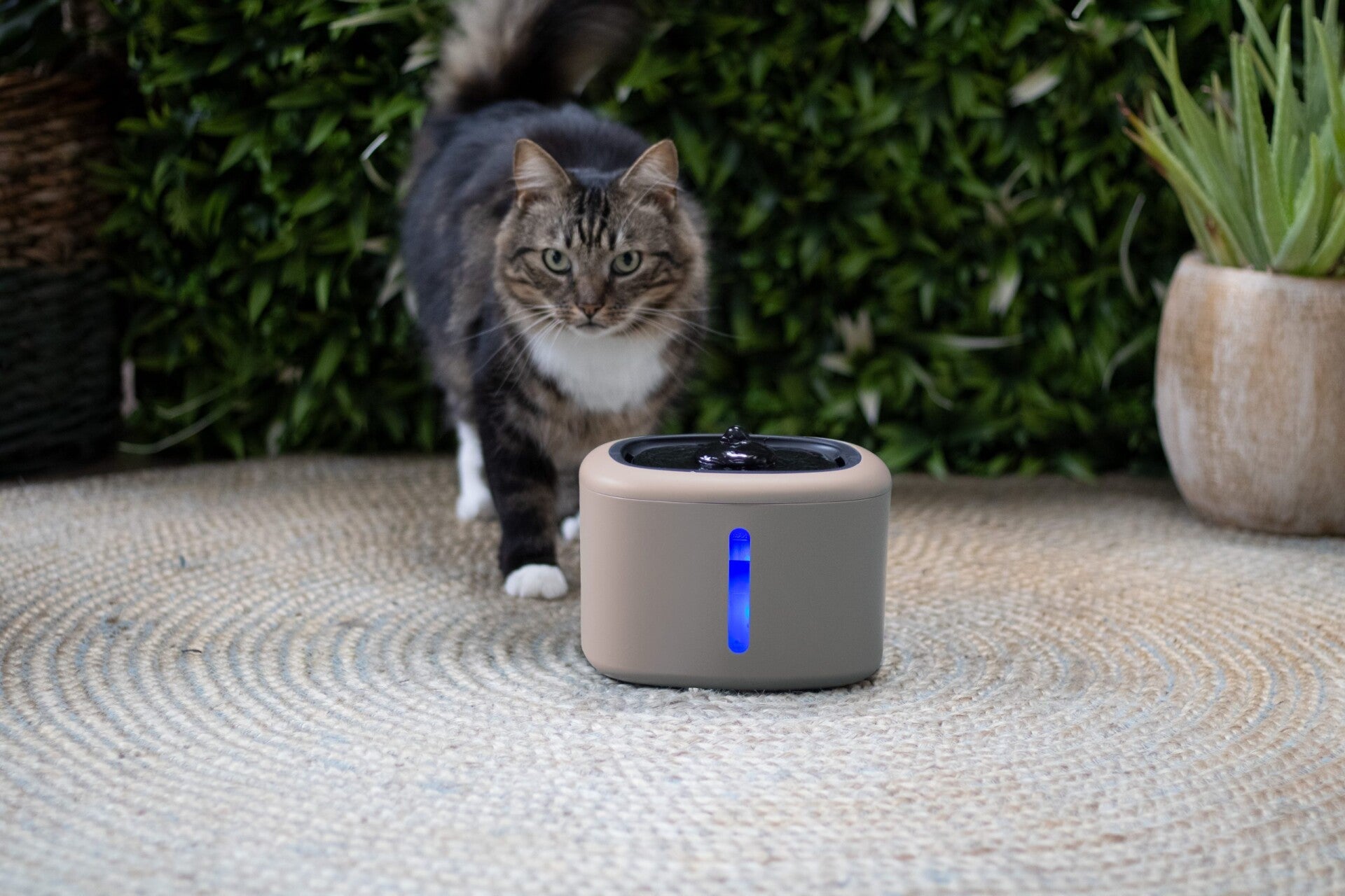 Dankzij de ingebouwde verlichting kunt u eenvoudig zien of de fontein nog voldoende water bevat: het blauwe licht geeft aan dat er genoeg water is, terwijl het rode licht aangeeft dat het tijd is om bij te vullen.