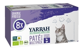 Yarrah Cat Alu Pate Multipack Chicken / Turkey 8 x 100 gr is graanvrij, volledig kattenvoer, biologisch natvoer met kip en kalkoen en aloë vera, voor een sterk immuunsysteem.