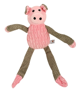 De binnenkant van de lange armen bestaat uit touw en de benen zijn gevoerd met ritselfolie, zodat jouw hond niet alleen met het varken kan knuffelen, maar er ook lekker mee kan stoeien en spelen.